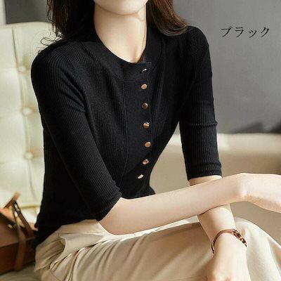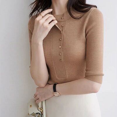 トップス レディース ニット セーター 五分袖 秋冬 プルオーバー ニットセーター 無地 薄手 サマーニット オシャレ ゆったり 通勤 カジュアル シンプル ベーシック 上品 透けない 送料無料