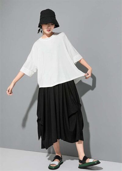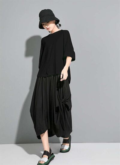 裾変形Tシャツ レディース 春夏 半袖トップス Tシャツ アシンメトリー Tシャツ 無地 クルーネック トップス 前後差 バッグデザイン 無地 大きいサイズ モード系 カジュアル ゆったり 上品 プレ