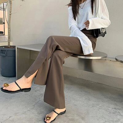 フレアパンツ スリット入り スラックス パンツ きれいめ サイドスリット レディース ブーツカット サイドスリットパンツ スリット ベルボトム ボトムス 美脚 脚長 オフィス オフィスカジュアル カジ