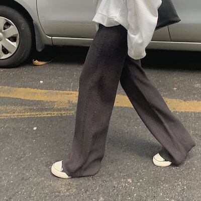 脚長効果!スキニーパンツ 韓国 ニットパンツ ゆったり 快適な 防寒 太め体型カバー 保温 ワイドパンツ ハイウエスト カジュアルパンツ スラックスパンツ