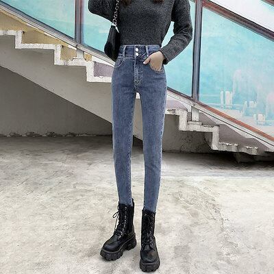 ハイウェストスキニーデニムパンツズボンストレート着やせレディースゆったりワイドジーンズWWKZ62