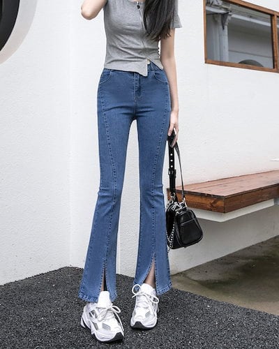 デニムパンツ レディース パンツ デニム スリット スキニーパンツ ストレッチ レギンス 春 夏 大きいサイズ ロングパンツ パンツ ウエスト ゴム 黒 ジーンズ スキニー スリットパンツ 伸びる ス