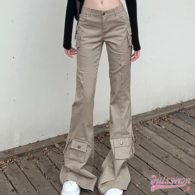 2024夏 韓国パンツ モップパンツ ワイドレッグ フレア ハイウエスト 脚長効果 美脚効果 細見え 春 ベージュ 茶色 カジュアル ストリート 韓国ファッション レディース お出かけ