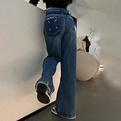 【短/長2タイプ】人気 デニムパンツ レディース ゆったり ワイド ハイウエスト フレア ダメージ 大きいサイズ レディースロングパンツ ストレート ストレッチ スキニー ジーンズ け メガ割