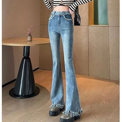 女性用の多用途なローエッジジーンズ女性用のファッショナブルなハイウエストストレッチスリムスリミングニッチマイクロフレアジーンズ