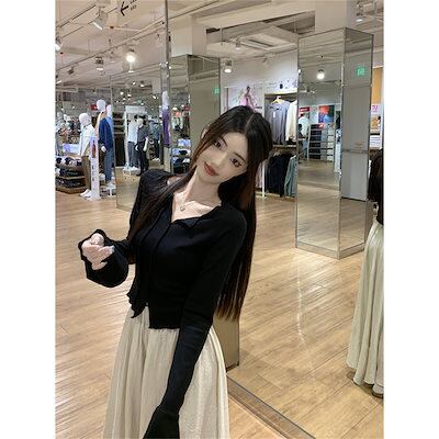 ワンピース2点セット 気質セット黒フレア長袖Tシャツレディース初秋弾性ウエストカジュアルワンピースパンツ2点セット