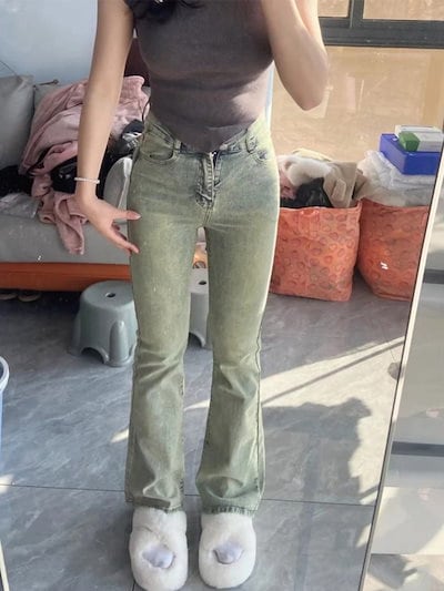 レトロレトロレトロなマイクロフレアジーンズ女性春秋の新型ビッグサイズ太mmハイウエストスリム梨型ボディパンツデニムボトムス 2023 レディース