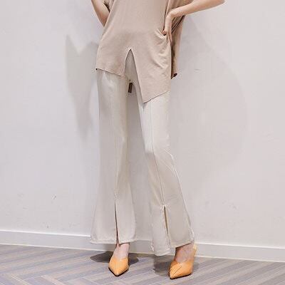 ワイドパンツ ニットパンツ美シルエット フレアパンツ 韓版ドレープ感ハイウエスト着痩せスリットアイスシルクラッパズボン接触冷感ボトムスひんやりボトムス脚長効果!スキニーパンツ スラックスパンツ