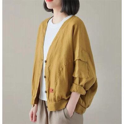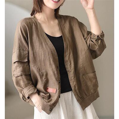 ジャケット レディース 綿麻 ノーカラージャケット 通勤 秋物 春