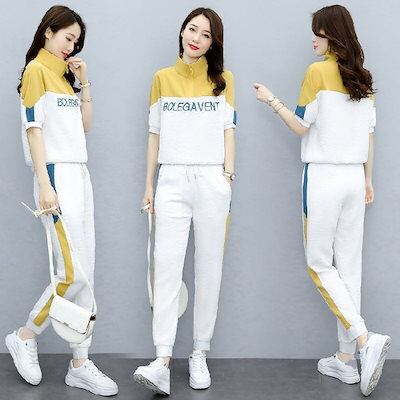 【2点セット】涼しく楽ちんセットアップ レディース 夏 2024新作スポーツカジュアル2枚組パンティーセット 韓国 半袖 ルームウェア セットアップ スウェット上下セット スーツ