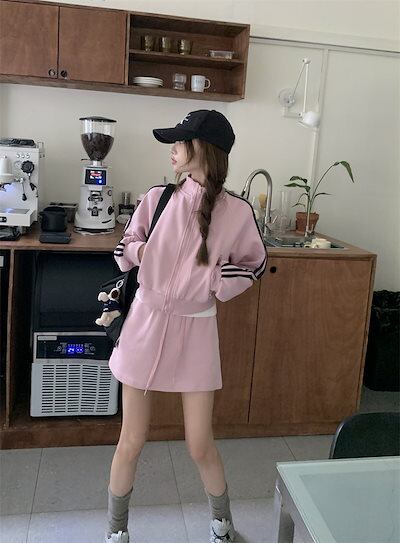 2024 秋 上下2点セット トップス お出かけ 羽織り ショート丈フルラウンドヘム ミニ丈ボトムス ストレート系冬 ゆったりレディーススタイルアップワイドお出かけトラック