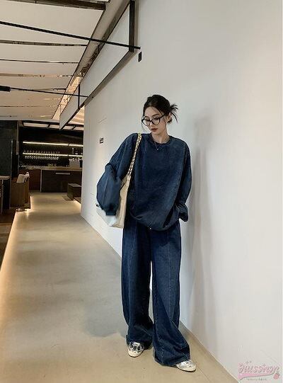 上下別売り 長袖シャツ レディース かわいいトップス ラウンドネックカジュアルパンツボトムスシルエット2点セット 風きれいめ サイズ 秋冬スタイルゆったりファッションダブル加工カジュアル大人可愛い