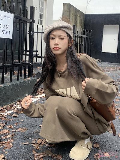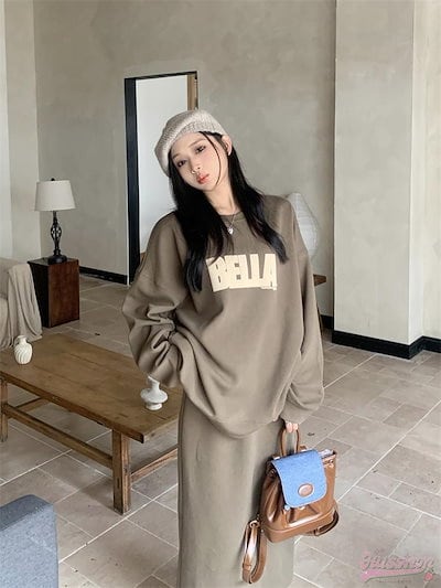 上下別売り 薄手 長袖シャツ トップスロングスカート 丈長め ルーズ レディース かわいいシルエット2点セット フード付き風 きれいめ サイズ 秋冬 ゆったり通勤 通学ファッションブル大人可愛い