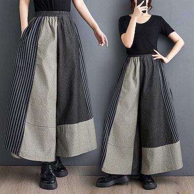 「ファットガール」 2024夏新品 デニムドッキング ワイドパンツ 大きいサイズ キュロットスカート 体型カバー ゴム レディース フレア ロングパンツ メガ割