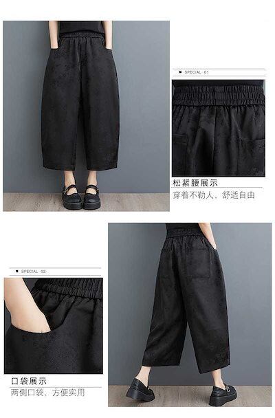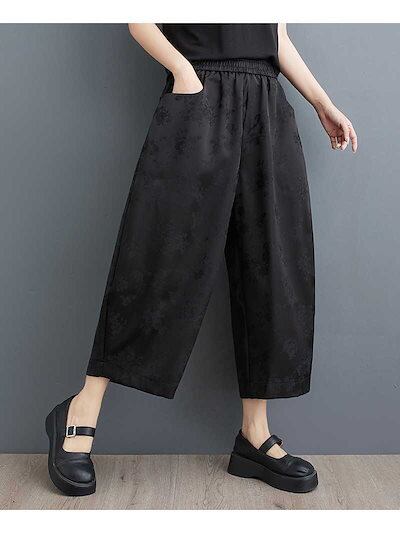 「ファットガール」 2024夏新品 九分丈 ワイドパンツ 花柄 大きいサイズ 体型カバー レディース ゴム ロングパンツ メガ割