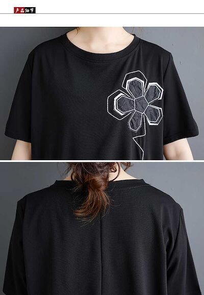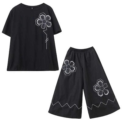 「ファットガール」 2024夏新品 上下2セット 花柄刺繍 Tシャツ+ワイドパンツ レトロ 巾着 大きいサイズ 体型カバー レディース セットアップ メガ割