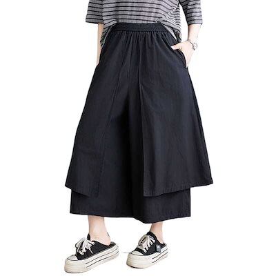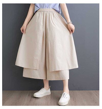 「ファットガール」 2024夏新品 ワイドパンツ キュロットスカート 無地 ハイウエスト レイヤード ニセ2SET レディース ロングパンツ メガ割