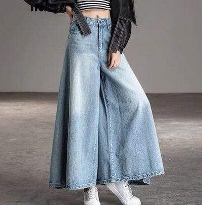 気質 ハイウエスト デニム レディース ロングパンツ 着痩せ 百掛け ワイドレッグパンツ