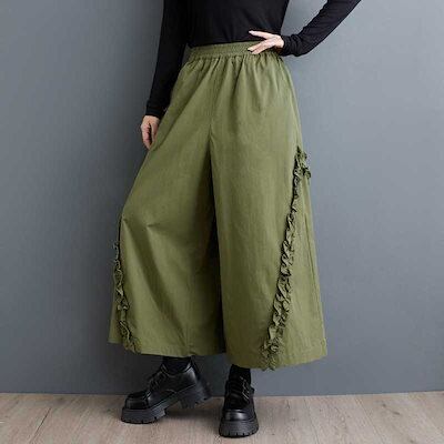 「ファットガール」 2024秋新品 ワイドパンツ 花柄 ゴム 大きいサイズ 体型カバー レディース ロングパンツ メガ割