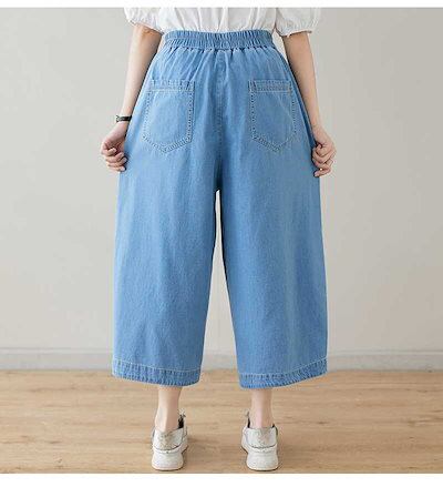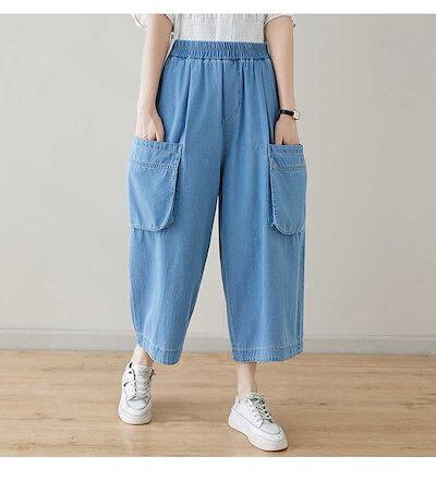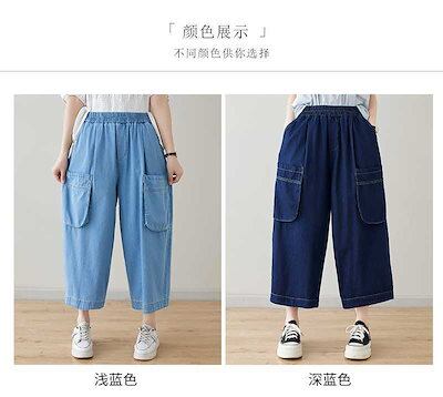 「ファットガール」 九分丈 デニムパンツ ワイドパンツ ジーンズ ポケット付き 夏 ゴム 体型カバー 大きいサイズ ゆったり レディース