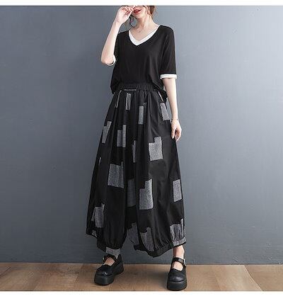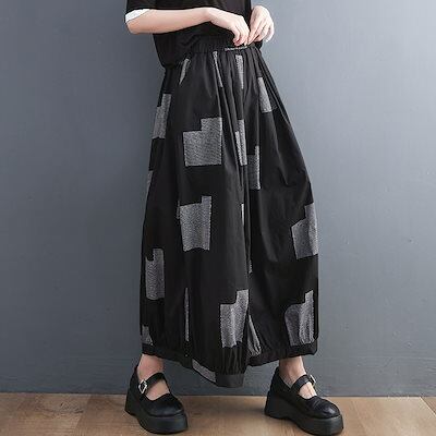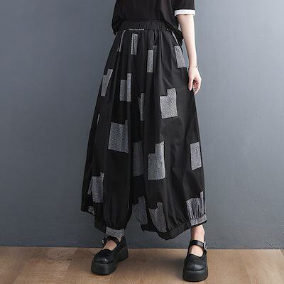 「ファットガール」 夏 九分丈 ワイドパンツ ゴム 体型カバー 大きいサイズ ゆったり レディース