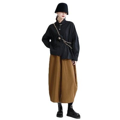 【J.Fashion】 秋冬 レトロ サルエルパンツ レディース ワイドパンツ スラックス ゆる 九分丈 厚手 レディース ロングパンツ メガ割