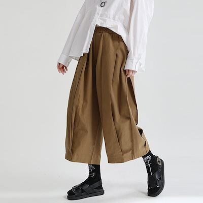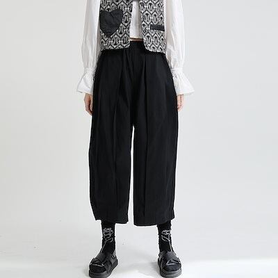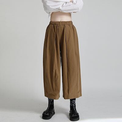 【J.Fashion】 ゆったり 九分丈 ワイドパンツ ゴム ハイウエスト スラックス 通勤 レディース 綿麻 パンツ メガ割