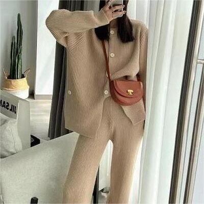 【2枚購入で 2oo円OFF! 】秋冬 新作 おしゃれ 気質 ニット アウター 二点セット レディースセットアップ 上下セット セーター ワイドパンツ セットアップ 通勤 シンプル 福袋