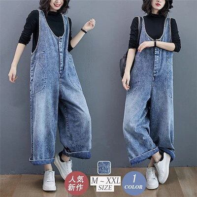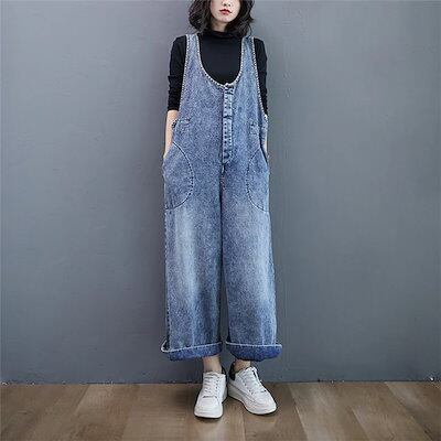 サロペットパンツ レディース 40代 春秋 デニム ワイドパンツ オーバーオール 30代 50代 オールインワン ジーンズ