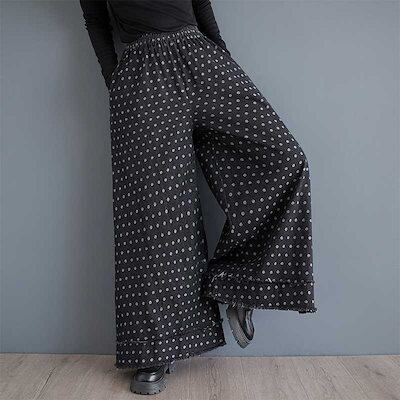 「ファットガール」 2024秋冬新品 水玉 デニム ワイドパンツ 大きいサイズ 体型カバー レディース ゴム レトロ ジャージ ロングパンツ メガ割