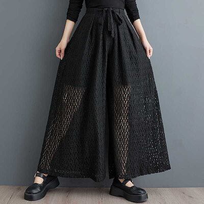 「ファットガール」 2024秋新品 九分丈 ワイドパンツ ゴム 大きいサイズ 体型カバー ゴム キュロットスカート レディース ロングパンツ メガ割