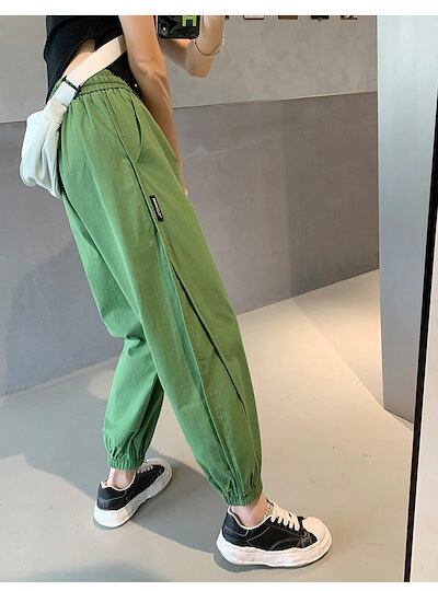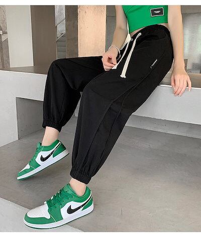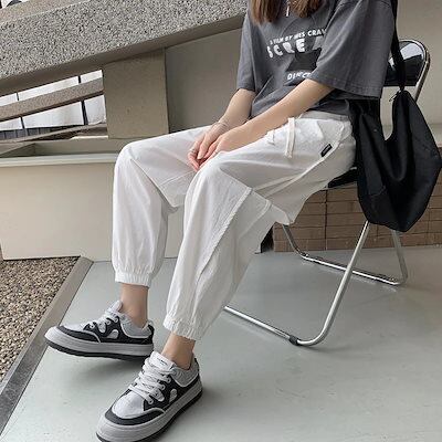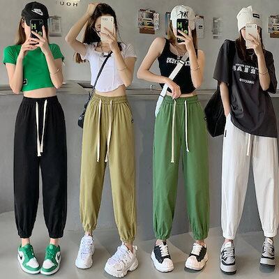 接触冷感ボトムスレディース夏服ロングパンツスポーツカジュアルスラックス韓国ファッションハーレムパンツ ハイウエスト着痩せ効果