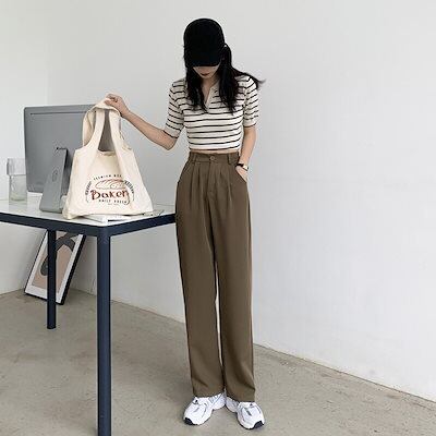 2024新型人気スラックスパンツガウチョパンツスラックスパンツトムスレディースハイウェストセルフカットパンツ