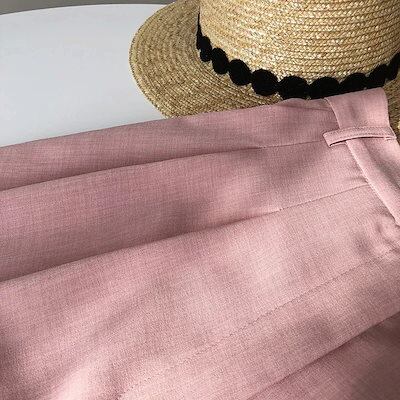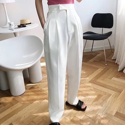 レディースモップパンツ黑白薄手ロング丈ズボン皺防止肌にやさしい美腿合わせやすい人気スラックススーツ接触冷感ボトムス