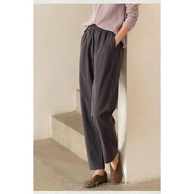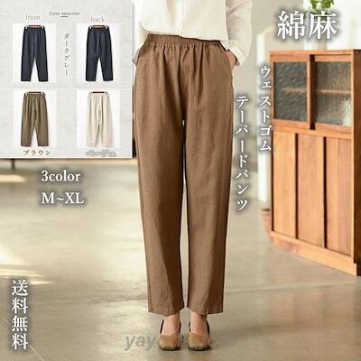 テーパードパンツ レディース サルエルパンツ 綿麻 リネン素材 春夏 アメカジ ズボン チノパン ウェストゴム ゆったり 大きい 体型カバー リラックス ボトムス