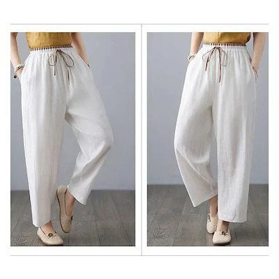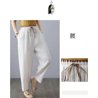 作トレンドボトムステーパードパンツストレートサルエルパンツウエストゴムレディースカジュアルポケット付きったりン綿九分丈薄カジュアル