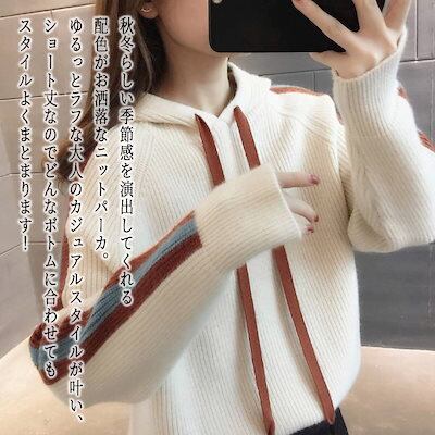 パーカー レディース バイカラーニットパーカ オーバーサイズ ジャケット スウェット おしゃれ 厚手 大きめ 長袖 グレー 大きいサイズ かわいい 冬 ロング トレーナー 春 韓国 人気 ジップ 秋