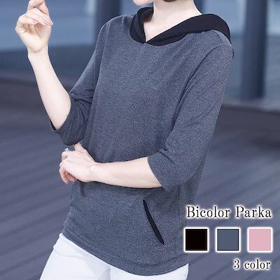 パーカー レディース バイカラーパーカ オーバーサイズ 長袖 ロング あったか ロゴ トレーナー 人気 大きめ 冬 きれいめ かわいい グレー スウェット ブランド 軽量 コーデ 春 秋 ジップ 大き