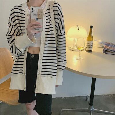 秋作パーカージャケットレディースボーダー柄ジップアップパーカーチュニック長袖ゆったり体型カバーカジュアルアウター