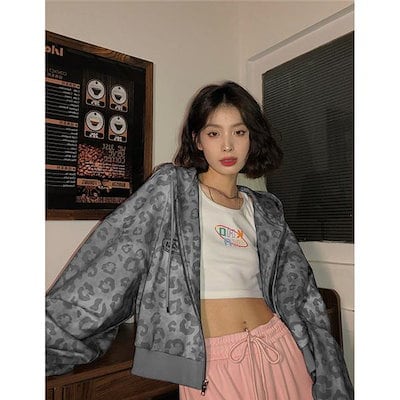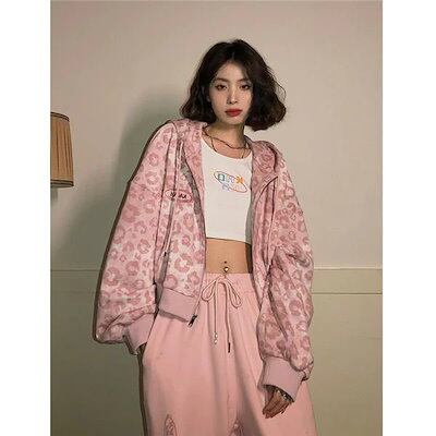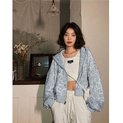 秋作パーカージャケットレディースヒョウ柄ジップアップパーカーチュニック長袖ゆったり体型カバーカジュアルアウター