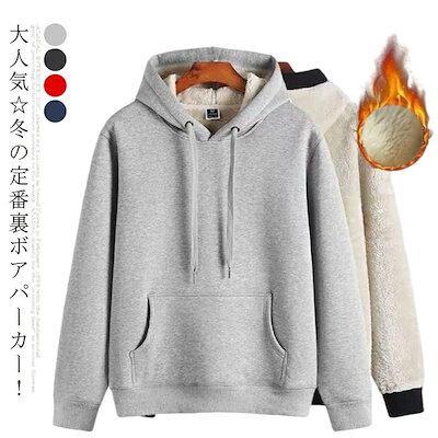 裏起毛パーカー 無地パーカー プルオーバーパーカー メンズ レディース 裏ボアフード付き 防寒 厚手 ロング おしゃれ 長袖 冬 秋 大きいサイズ 裏起毛 お揃い