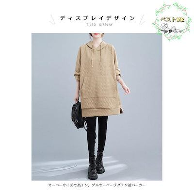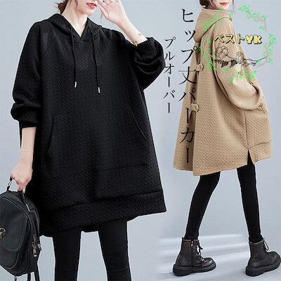パーカー レディース オーバーサイズ プルパーカー お洒落 ラグラン袖 体型カバー ヒップ丈 パーカー プルオーバー フロントポケット 春 秋