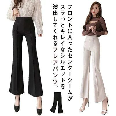 ストレッチ フレアパンツ センタープレス ペンシルパンツ レディース パンツ スラックス 無地 ハイウエスト ウエストゴム ストレート ブーツカット ロングパンツ 美脚パンツ パンツドレス