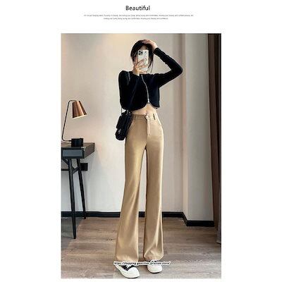 フレアパンツ スラックスパンツ レディース スリム ロングパンツ 裏起毛 暖かい あったか ボトムス 長ズボン ハイウエスト 美脚 脚長 体型カバー 送料無料