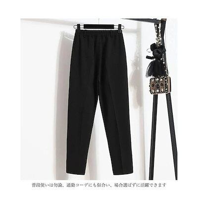 スーツパンツレディースロングパンツ無地ポケット付きウエストゴムオフィススラックス柔らかいゆったりシンプル脚夏
