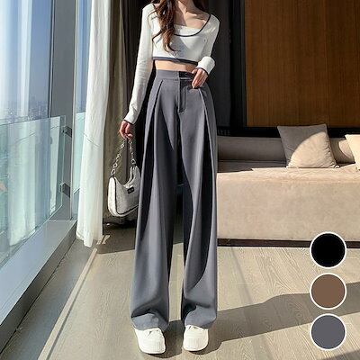 ハイウエストタックパンツスラックス脚脚長効果細見え可愛い大人カジュアルデートおすすめレディーストレンドオシャレ人気プチプラ韓国ファッション