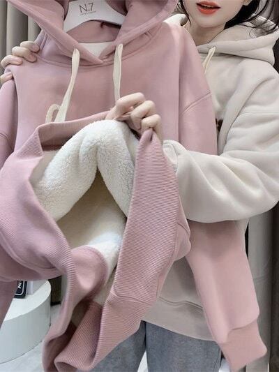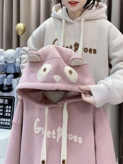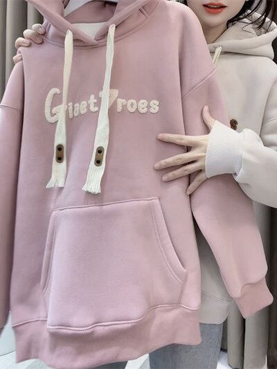 パーカーレディーススウェット秋冬ゆったり裏起毛厚手ベルベット韓国ファッションカジュアルゆるい文字刺繍フード付き女性長袖保温コート上着アウター