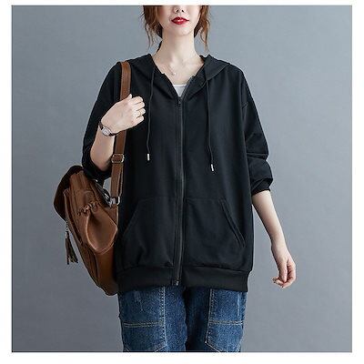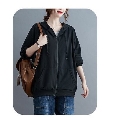 パーカー アウター レディース ジップアップ パーカー 秋 新作 ゆったり スウェット ジップパーカー フード付き アウター カジュアル 体型カバー シンプル