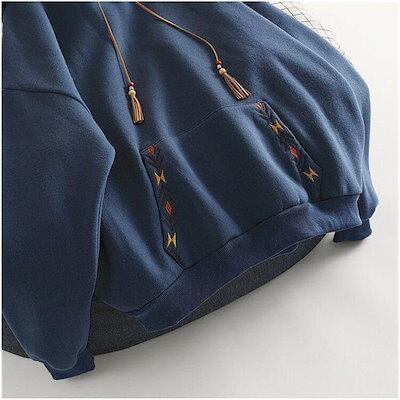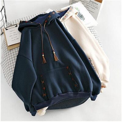 パーカーレディースフード付き長袖刺繍重ね着風プルオーバーパーカースエットゆったりシンプルカジュアル秋作おしゃれ可愛通学