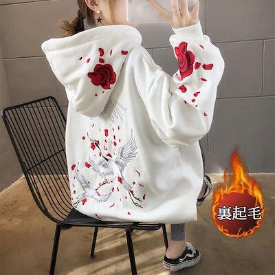 超目玉品パーカーレディーストレーナー裏起毛プリントおしゃれ秋冬アウタースウェット部屋着秋コーデ暖かいゆったりカジュア
